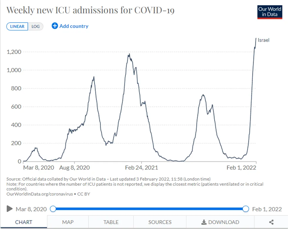 D’une part, il y a eu beaucoup plus de cas globaux d’Omicron par rapport au nombre de cas graves, mais nous ne devrions pas voir ce nombre de décès et d’hospitalisations graves dans la nation la plus vaccinée. N’oubliez pas que cette variante a débuté en Afrique du Sud, un pays où seulement 27 % de la population a été vaccinée et où il n’y a pratiquement pas de rappels en vue. Pourtant, le taux de mortalité maximum par habitant dans ce pays pendant la vague Omicron est environ la moitié de celui d’Israël.